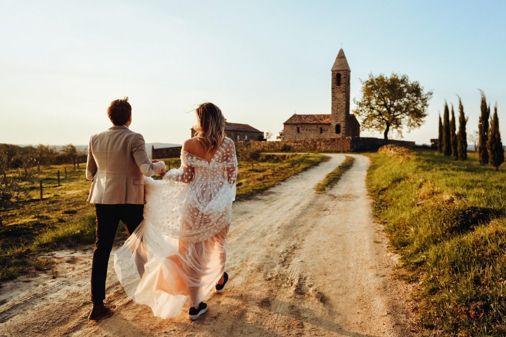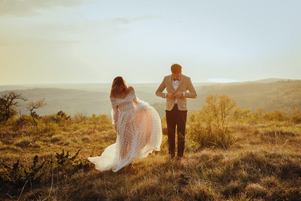 Bilo je prijetno toplo popoldne, in čeprav se je pomlad šele prebujala. Po cerkvenem obredu smo dan smo zaključili s prečudovitim sončnim zahodom. Jana in Matjaž pa sta svoj večer zaključila ob romantični večerji v soju sveč in pod miljon zvezdami.