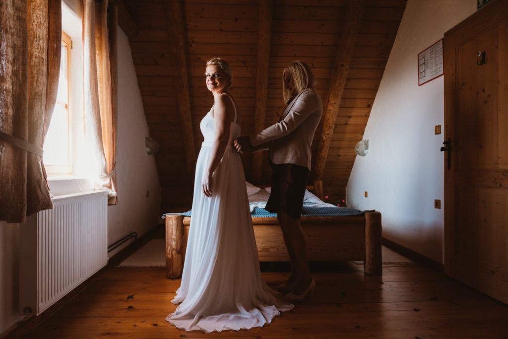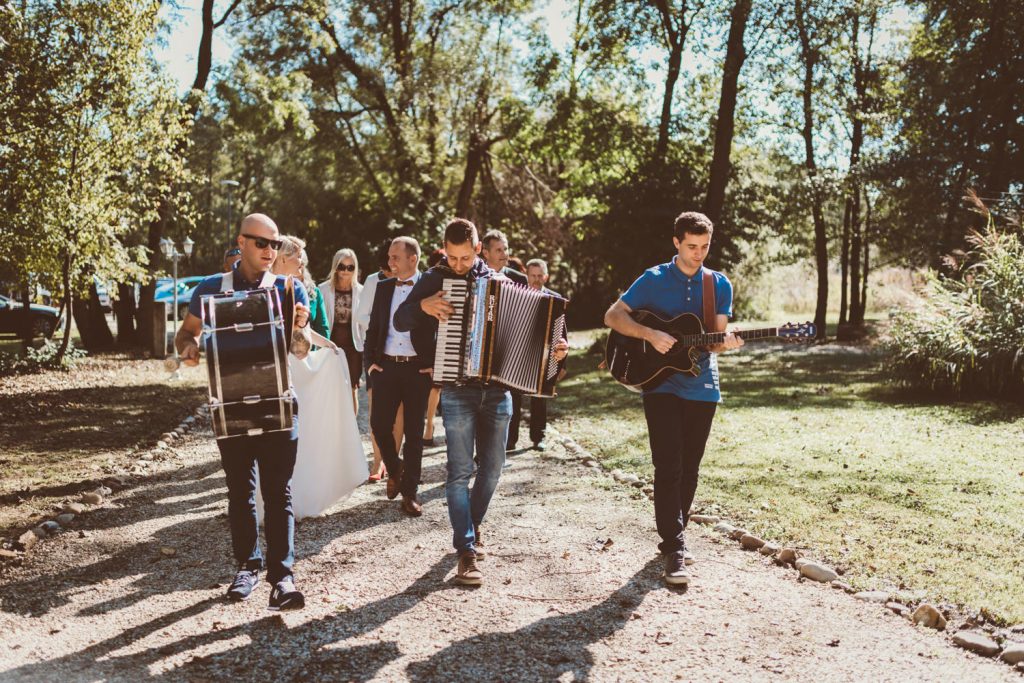 Civilni del poroke je potekal v gozdičku pri mlinu na Hotizi, cerkveni del pa v cerkvi na Hotizi, kjer je sta mladoporočenca tudi doma.